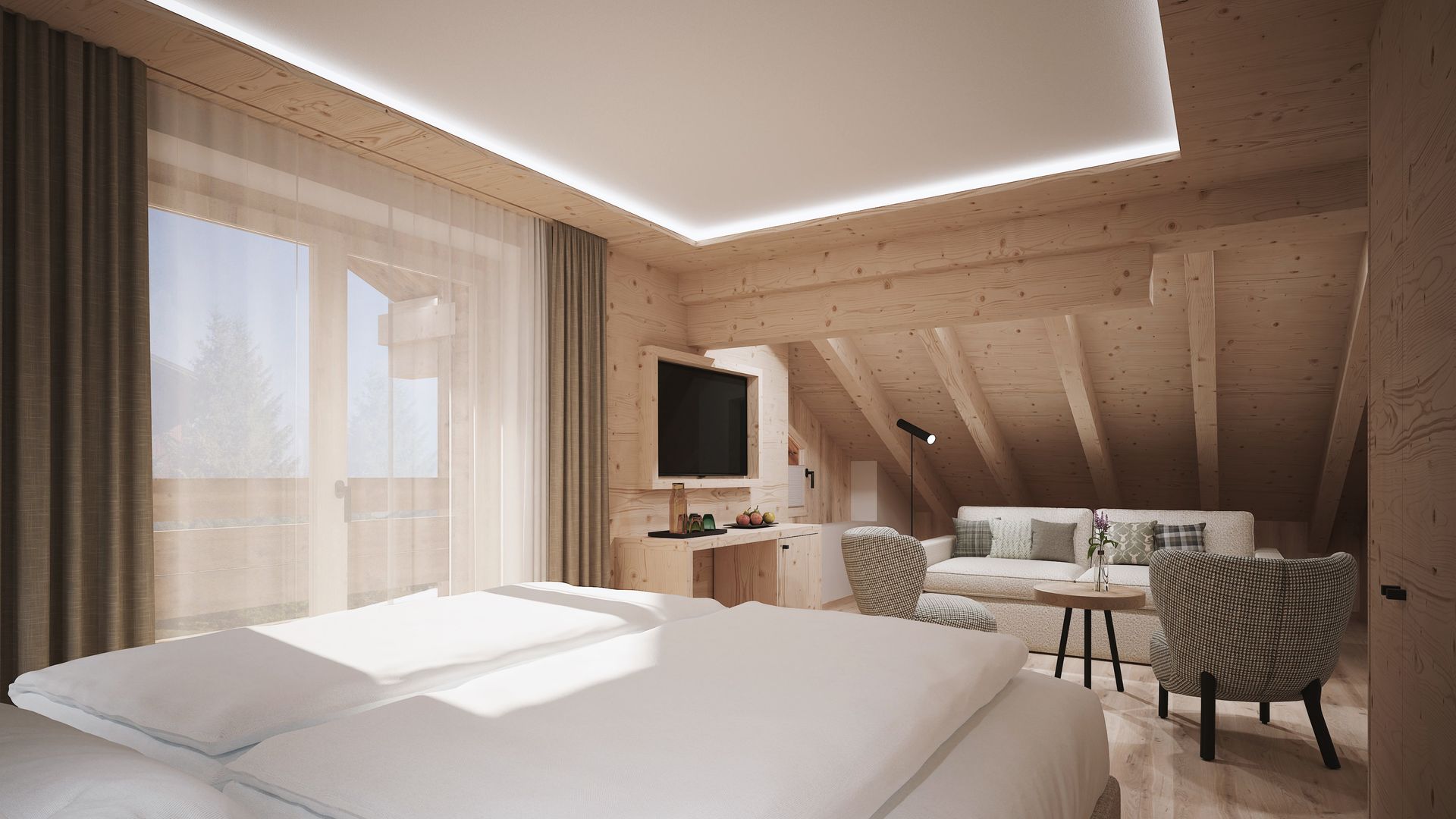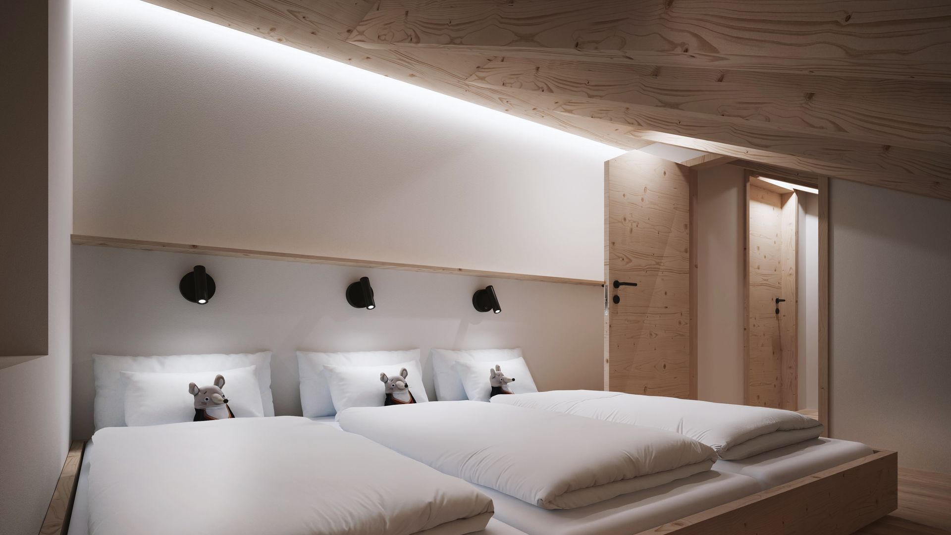 Floor plans and pictures are examples and may vary in terms of layout and furnishings.Living room/bedroom equipped with a cozy family box-spring bed (240 cm) - here you can snuggle up together and enjoy valuable family timeBench for playing together or for relaxing hoursBathroom with showerPlenty of storage spaceRefrigerator, Nespresso coffee machine, kettle and tea selectionas well as other lovingly selected details for an all-round relaxing family vacationSome of these family rooms can be combined with other family rooms 24 or the family suite 35 to form a family combination.Samsung HD TV with extensive channel list and streaming services, free WiFi, safe, telephone, ball game wall for the children, night light in all children's rooms, bath bag with bathrobes for the whole family, bath slippers for children up to size 36, changing table, childproof sockets with difficult plug-in protection